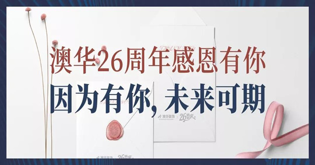 值此澳華26周歲之際,為了讓家人們在工作之余可以更加幸福無憂的享受生活,我們決定為每一位澳華家人獻上一份特別的禮物:澳華&泰康員工團體保險計劃。誠意感恩,讓愛延續,澳華與你終身相伴!
