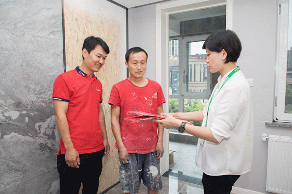 進入安裝階段的工地,即將開始張貼墻紙、安裝設備的工作。巡檢小組對安裝過程中容易出現的問題與工人進行了交流,要求工人仔細施工,確保工程保質保量的完成。