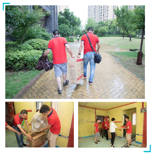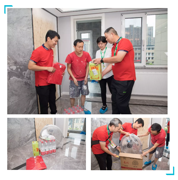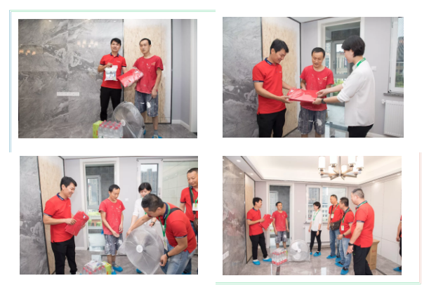 澳華裝飾首席巡檢官、副總經理笪逸奇帶隊,在對3家工地巡檢的同時,也為他們送上夏日里的清涼。