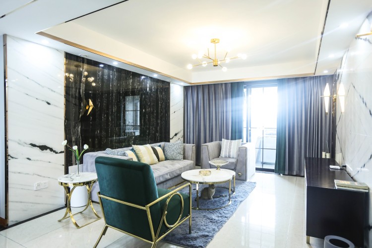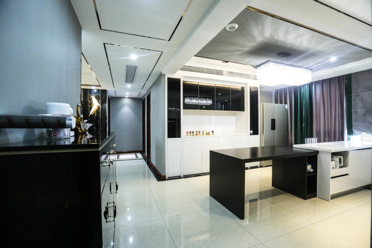 感謝這次裝修的效果非常棒,我非常滿意。其中,比較亮眼的地方就有開放式廚房的設 計以及整個餐邊柜的打造,整體看起來很開闊也很實用。還有這個輕奢金邊線條的運用 ,配上大理石的元素,構成一個高級黑白灰系列,我非常滿意。