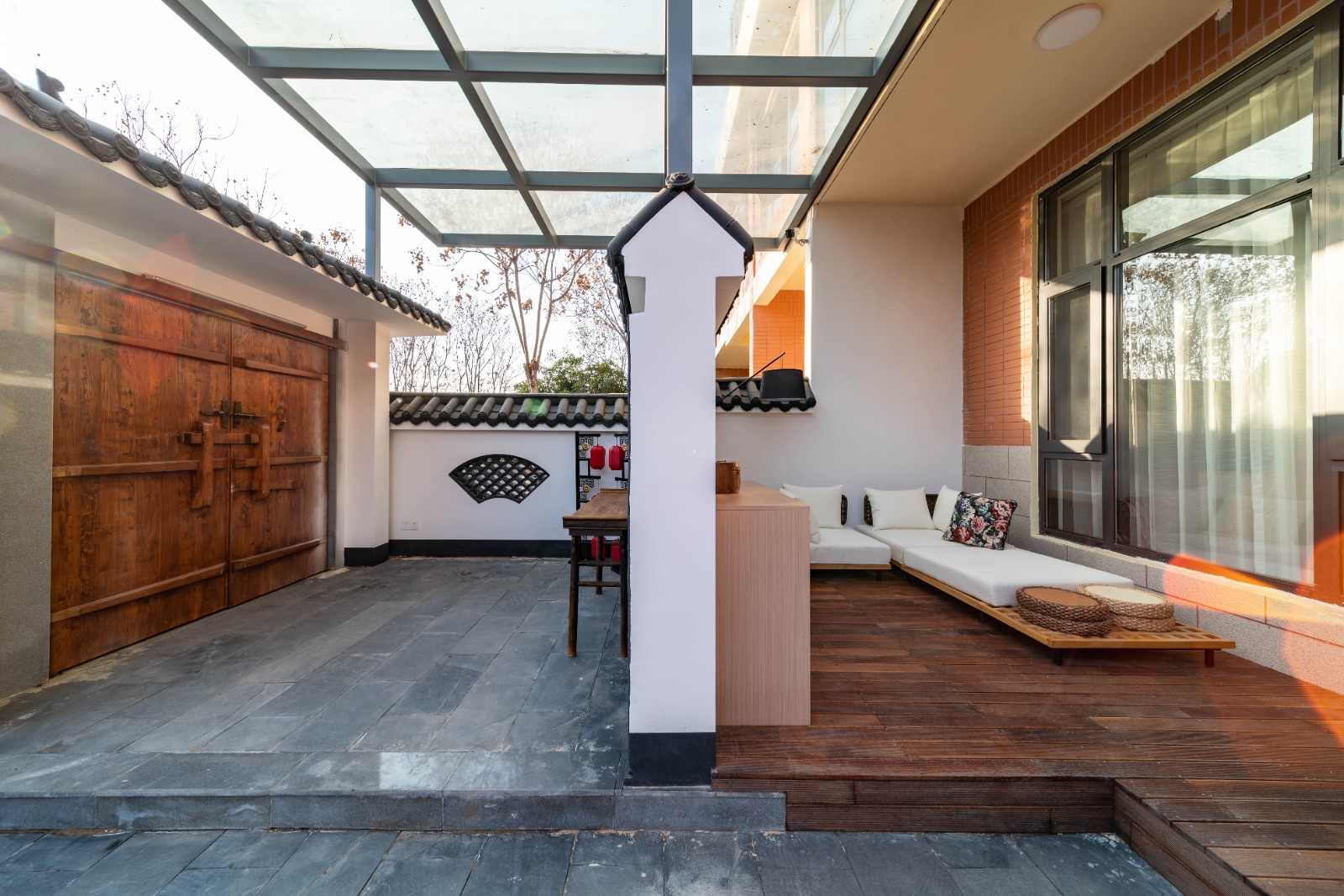 推開古樸的榆木大門,入目即是一面精雕細琢的篆刻磚墻,古法自然,大美無言。此般情景交融,虛實相生,仿佛夢回煙雨古鎮。閑庭信步其間,俯拾百般趣味。
