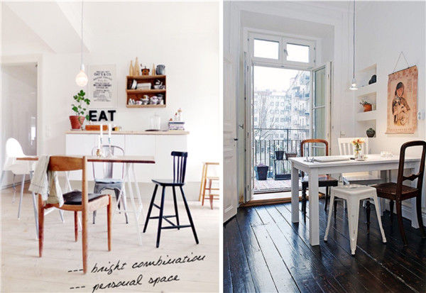 很多人在腦子里沒有概念的時候,都不敢輕易嘗試混搭,總覺得長得不一樣的椅子一旦像“湊數”,就會破壞掉美感;或者各種顏色的椅子放在一起,會很浮夸,其實不然。