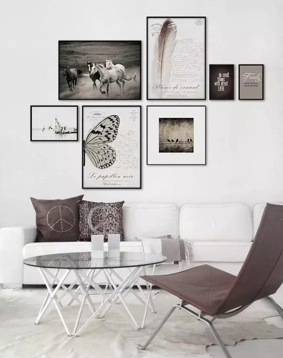 在不僅一幅框畫的情況下,如果只是把自己喜歡的照片以相同的尺寸放上墻,會(huì)呈現(xiàn)出一種刻板和無趣感,數(shù)量多的話就會(huì)產(chǎn)生視覺上的混亂。