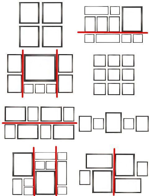 同樣大小的相框,按照最簡單的九宮格擺就可以了。如果采用了不同大小的相框,想要營造亂中有序的感覺,那么至少要有一條讓所有相框間距都相同的對(duì)齊線。
