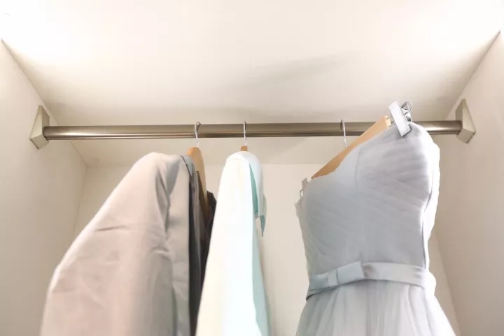 在掛衣桿的比例分配上,一般高度設定為90 ~ 110公分,若衣柜高180 ~ 200公分,就可以規劃上下兩桿。大衣與禮服類則定為150 ~ 180 公分,上下還可規劃其余的收納機能。