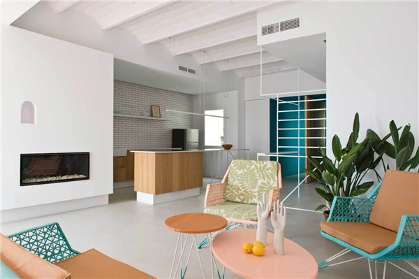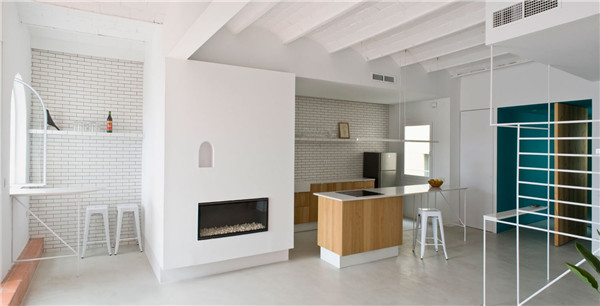 ▲屋頂一直是北歐系的亮點,本案從自然中汲取靈感,選擇靈動的波浪形來塑造出立體感,散發出藝術氣息。在開放式的空間中,以刻意凸出的壁爐分隔烹飪區與吧臺區兩個功能區,讓室內活動具有更明確的指向性。