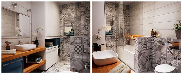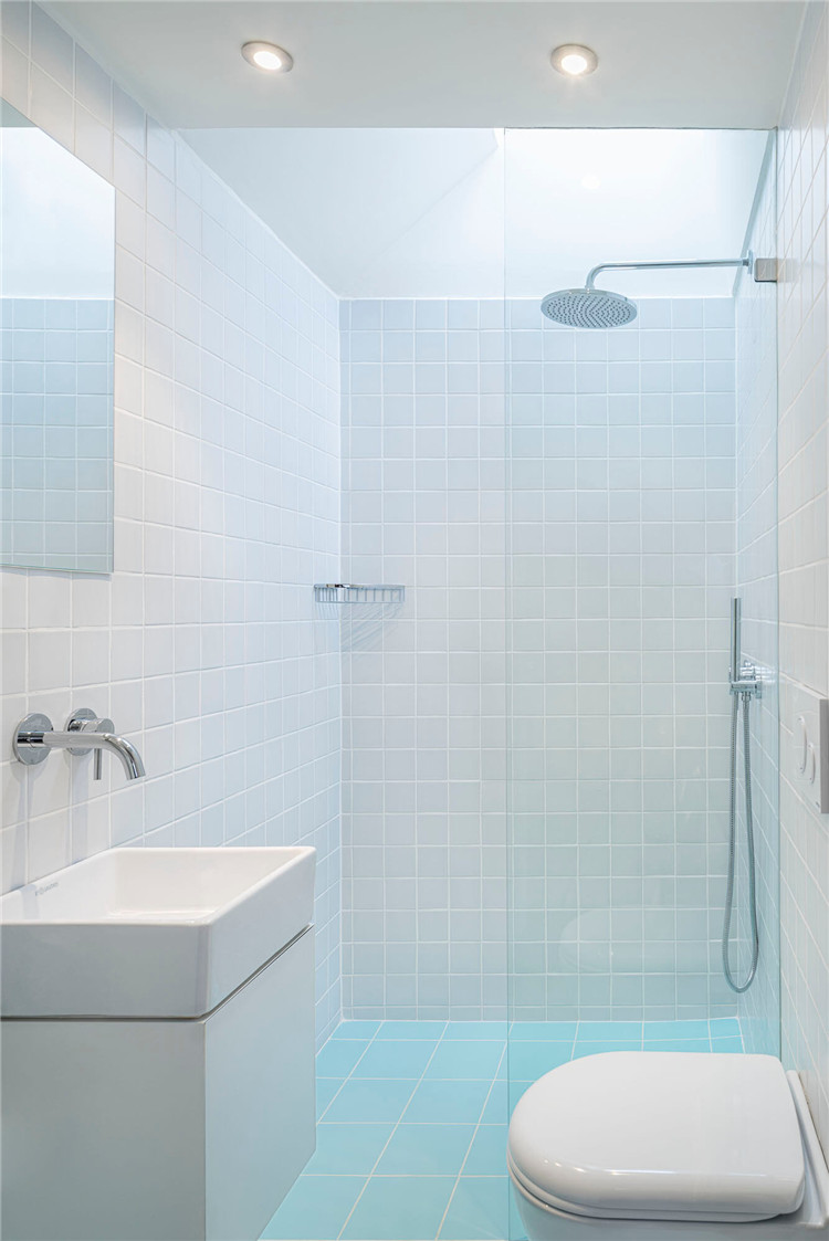 灰白間雜幾何圖案地磚既能防滑、耐臟還能提高顏值,不同于傳統的純色調防滑地磚,它透出一股小清新風。得益于小而精致的用具與空間形成的鮮明對比,空間在無形中增大使用面積,使用起來感覺會更棒!