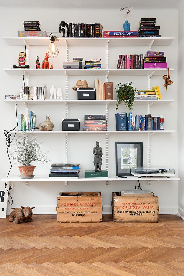 1、首先明確一點,如果你的書真的很多,你非常擔心擱板會塌,那還是放棄擱板,準備書架、書柜吧;