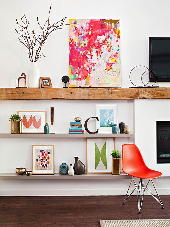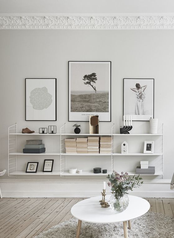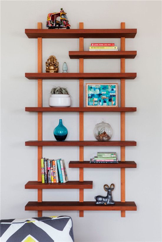 強迫癥患者的福音~將長擱板均勻劃分,更顯井井有條。但是需要根據自己的喜好和周圍環境來搭配物品,書籍和小工藝品都是不錯的選擇。