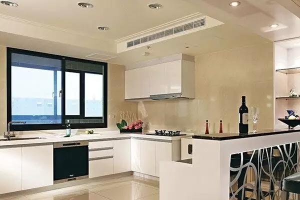 首先是室內的空間問題。如果你裝分體式空調,那么在廚房這樣的方寸之地,還得給空調留一個空間。
