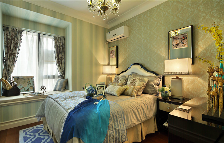 通過對家具的陳列,來表達出一種新的生活方式方向來進行嘗試,軟裝、布藝、裝飾等等一切,都以業主的需求為著力點,在強調美式風情及奢華體驗的同時,塑造出一個舒適浪漫的臥室空間。