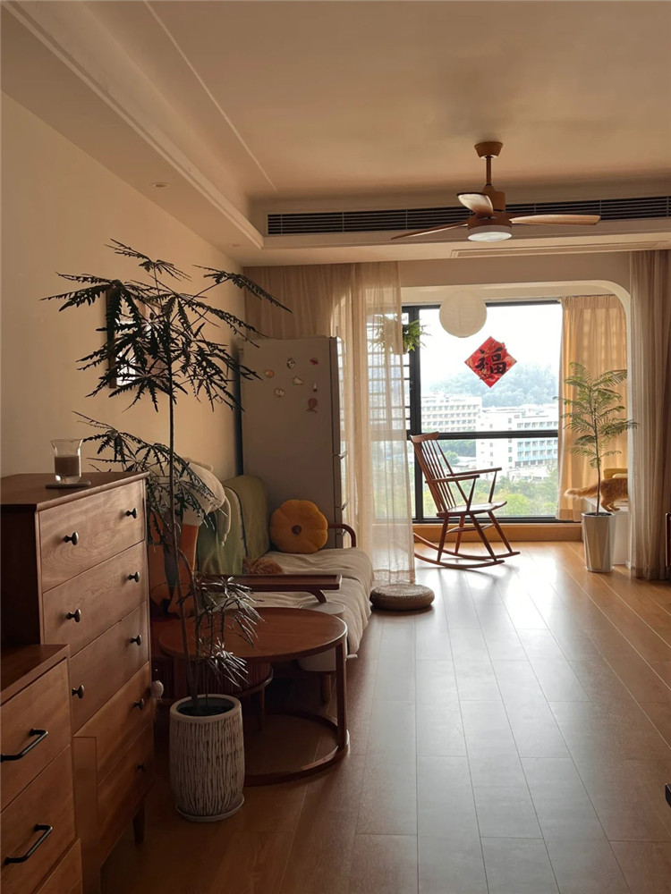 如果廚房與餐廳的面積都不夠放冰箱的話,也可以把冰箱放在客廳區(qū)域,反正冰箱是必要的一件電器,總要有個擺放的位置!