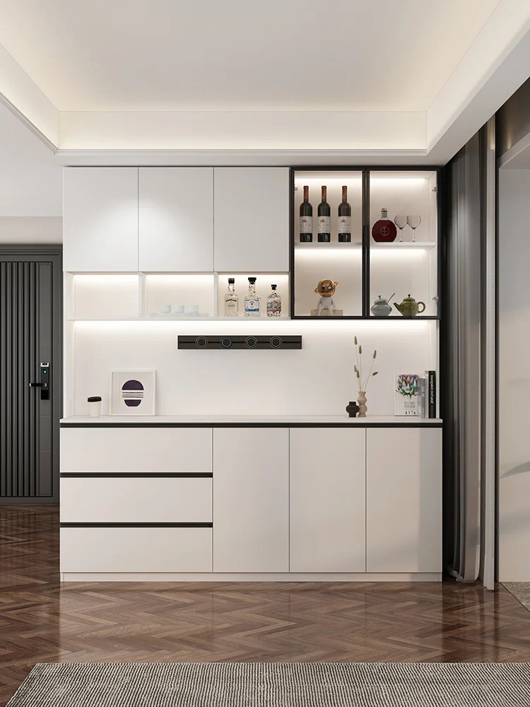 所以,柜下/柜內燈的設計十分必要,除了方便居住者找東西,還能提升照明氛圍,增加空間的顏值。