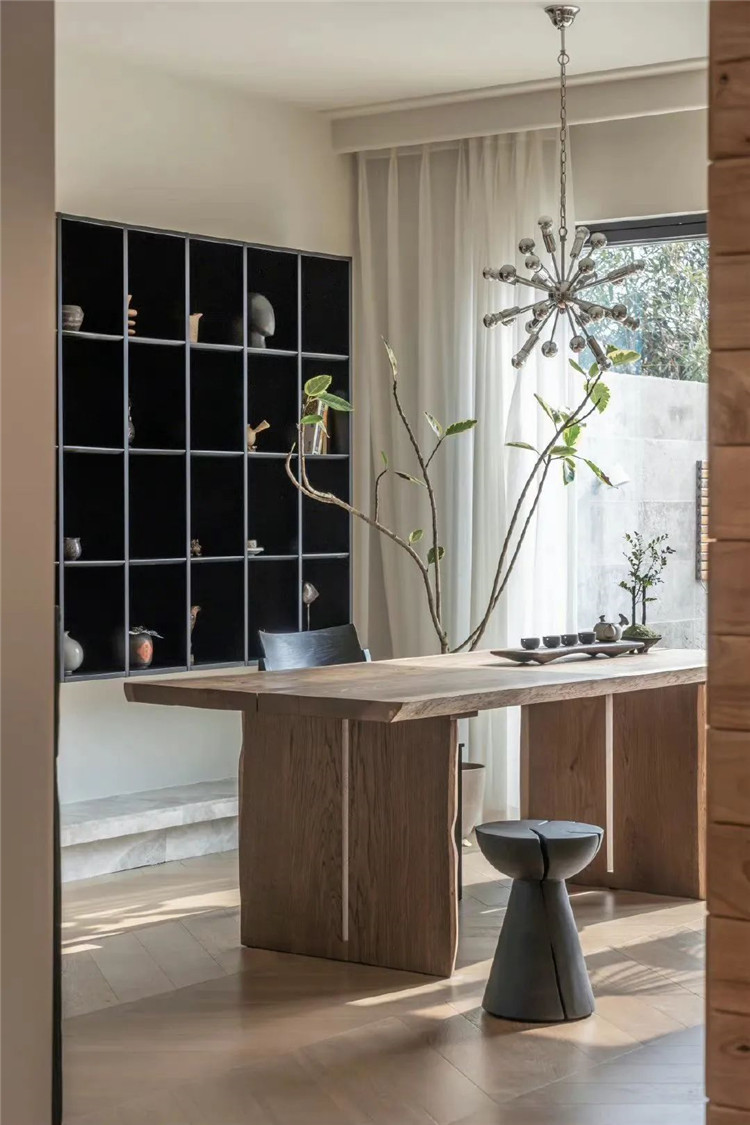 我們現代都市人就沒有那么好的自然環境啦,家里面積較大的業主,就選一個適合的空間做獨立茶室。視線好、敞亮的地方是茶室的上上選,就算做不到山景、江景,那至少選一處可以看到綠蔭或者俯瞰街景、仰望星空的地方吧~
