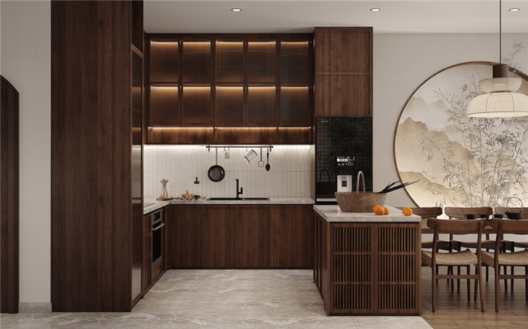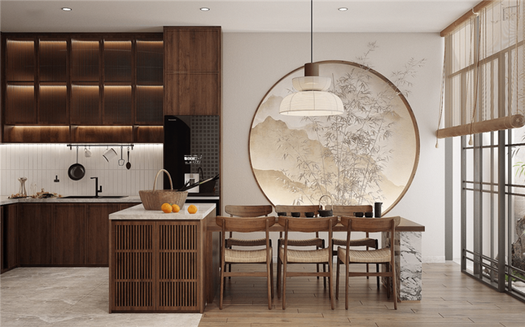 餐桌平常只在吃飯時使用,使用率并不高,可以考慮選擇低一點的餐桌,空閑的時候可以當茶桌用,飯后閑談喝茶,促進家人之間的感情,沒有比把茶室建在餐廳更為方便實用的。