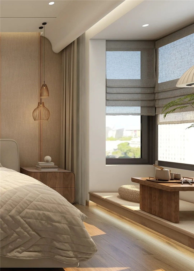 因地制宜,小小的飄窗也可以是一個小小的茶室。只需要擺上一張小桌、一套茶具、幾個軟墊即可打造出一個別有禪意的品茶區域。