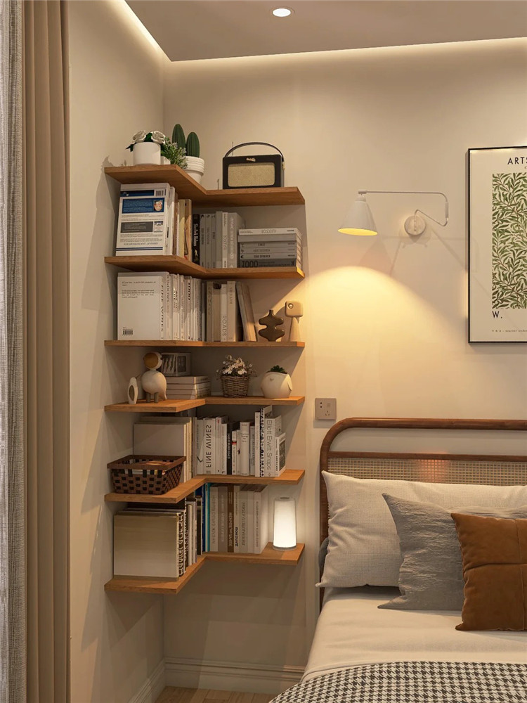 無論是客廳、餐廳、臥室亦或是陽臺,都可以在轉(zhuǎn)角區(qū)域安裝一些隔板,整體錯落有致,別有生趣。