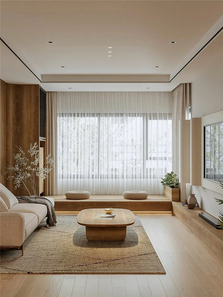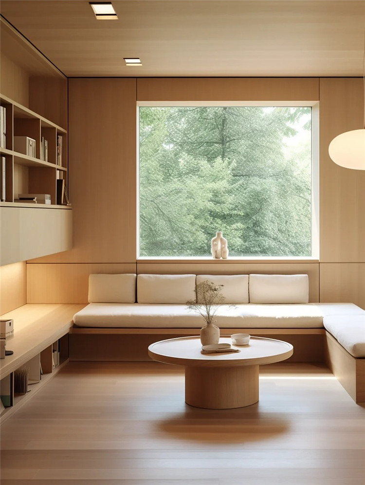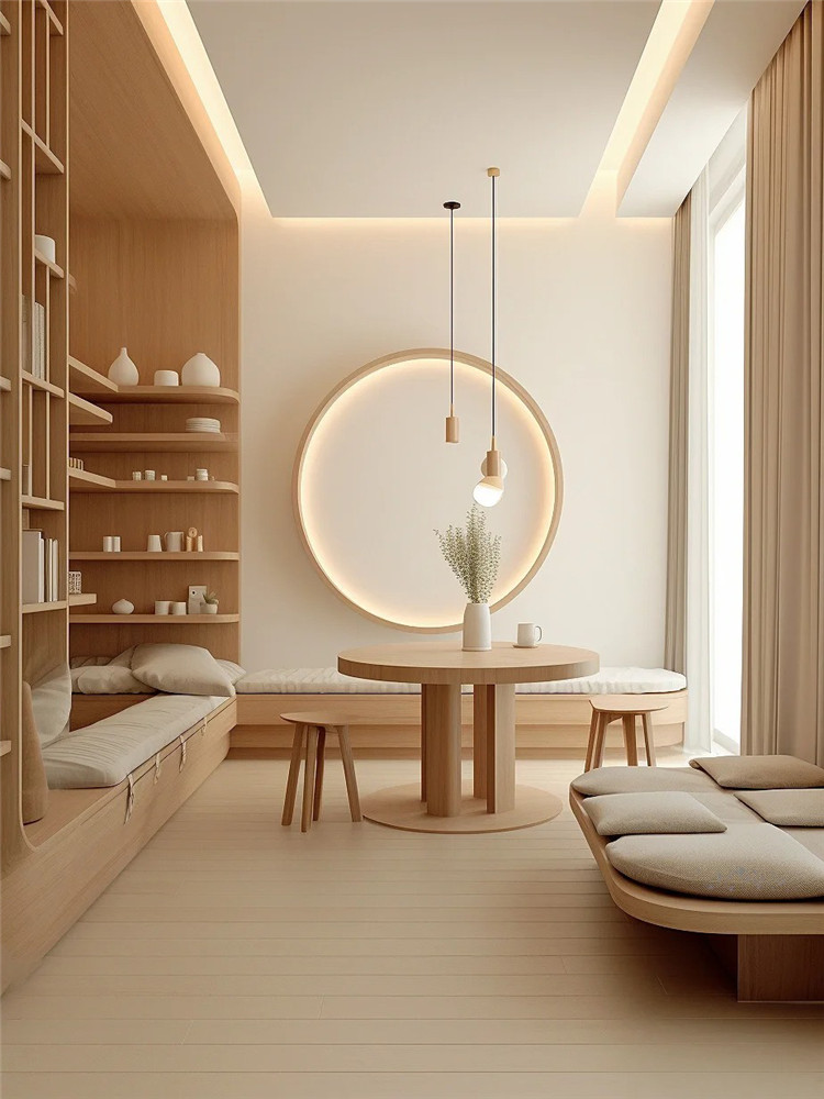 如室內(nèi)空間充足,可于轉(zhuǎn)角處定制地臺,配上柔軟的坐墊與小桌,這里就是一個充滿詩意的茶室。