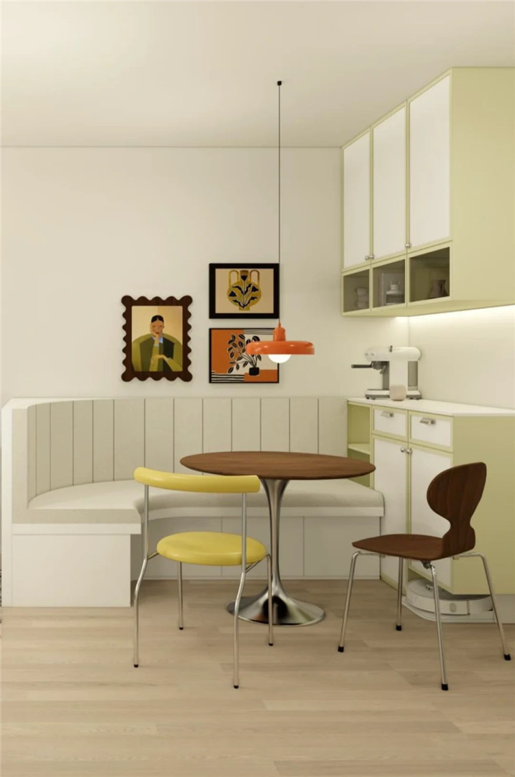 對小戶型來說,餐邊柜結(jié)合卡座一體設(shè)計就非常實(shí)用,卡座打破傳統(tǒng)餐廳的單調(diào)性,可以替代兩把餐椅,節(jié)省空間的同時又能容納多人用餐。