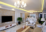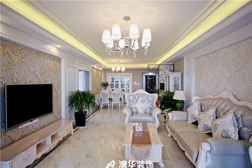 南湖半島的這套400㎡復式別墅,雖然面積相對于大多數房屋而言為大戶型、大空間,但是在大多數的別墅中,這棟別墅其實并不算大。再者該空間的犄角相對比較多,如何將這些犄角合理利用,甚至將犄角打造成為空間特色就成為了該別墅的設計難題。為了讓整個別墅空間得到合理利用,且更彰顯華貴之美,空間使用了較多的大理石等質感較強的材質,而空間劃分上則多以通透的軟隔斷為主。