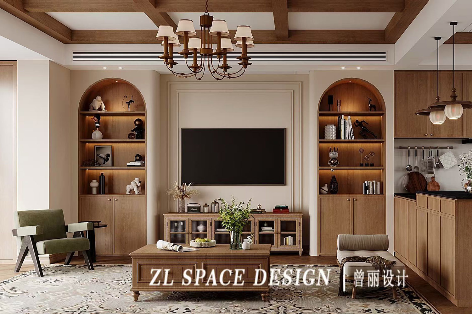 百瑞景這套三居室的住宅占地面積約為90㎡,戶型結構緊湊且空間浪費少,整體需進行改動的區域并不多,且能夠滿足業主的日常使用需求,因此設計師保留了原有的空間結構。為提升空間的利用率,提高業主生活品質,設計師將狹長的客廳中切割出一小塊區域打造成迷你衣帽間,在不破壞會客區域功能使用的同時,有效提升了整個空間的合理規劃性。