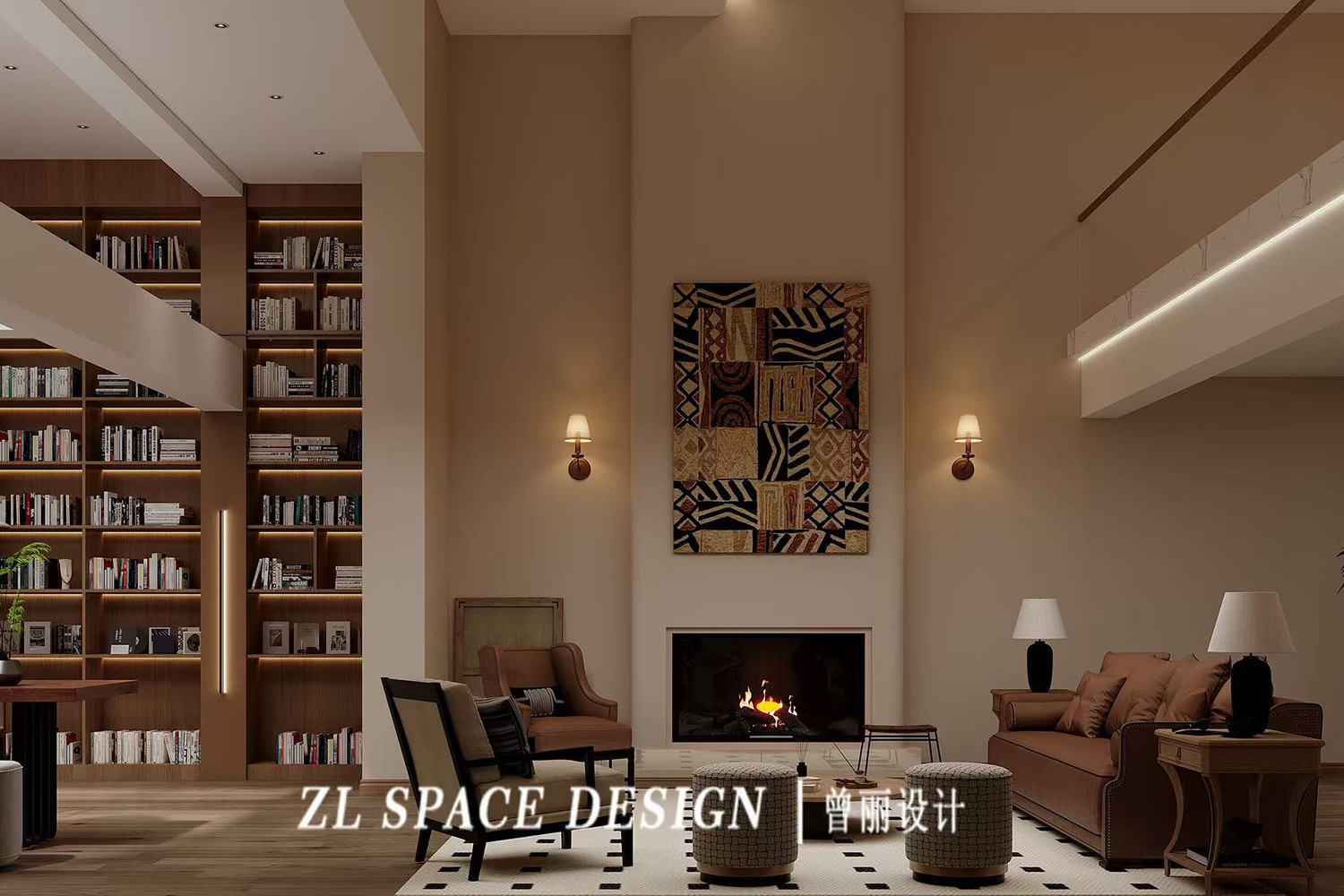 客廳借用大面積的書柜作為背景墻裝飾,簡約而又不失使用感,同時還有效提升了空間的文藝氛圍。
