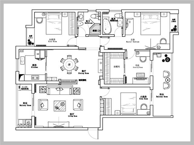 同馨花園120㎡三居室歐式典雅住宅戶型解析