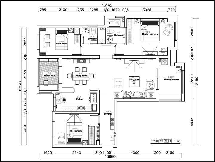 百瑞景180㎡四居室歐式風住宅戶型解析