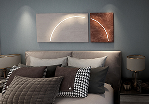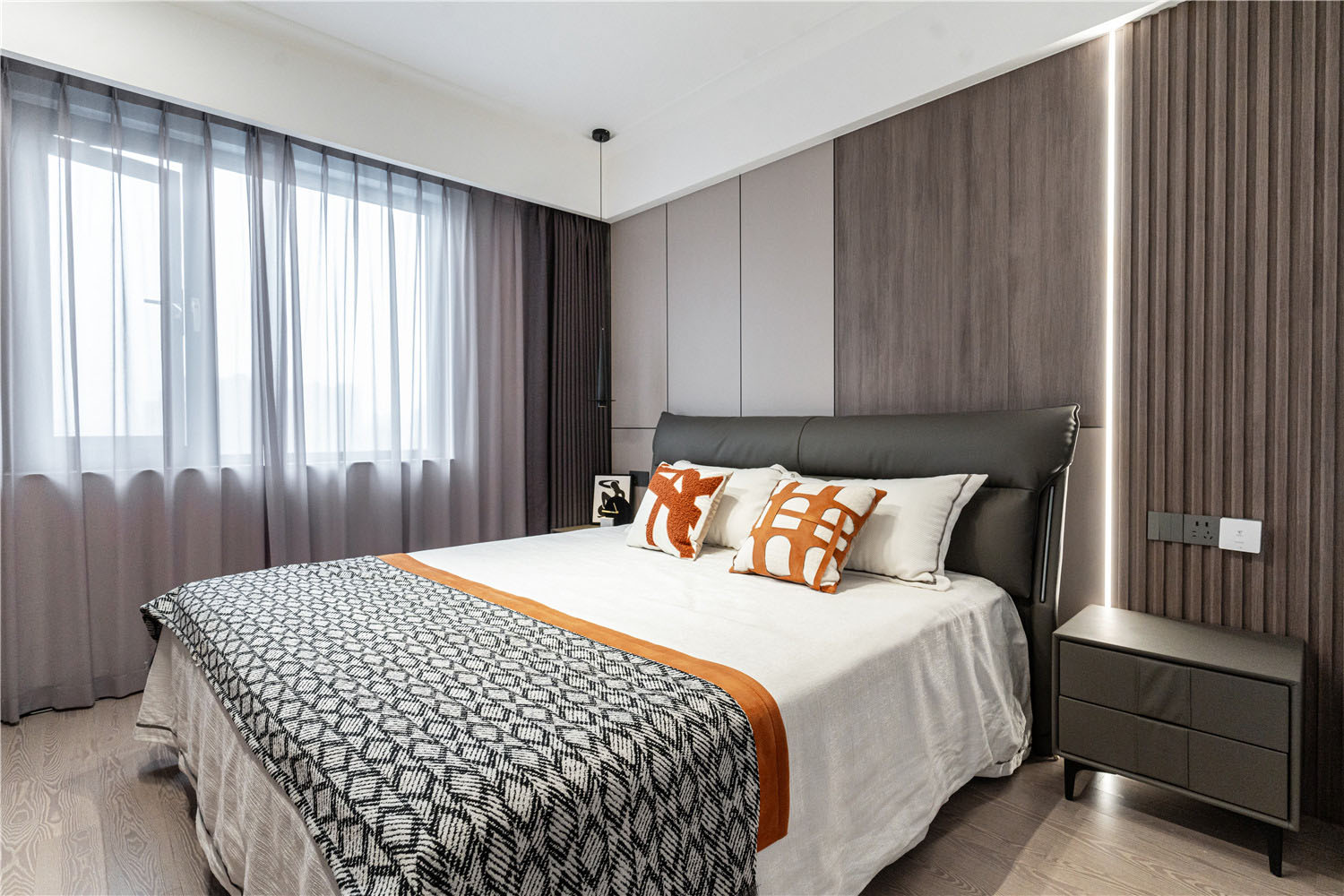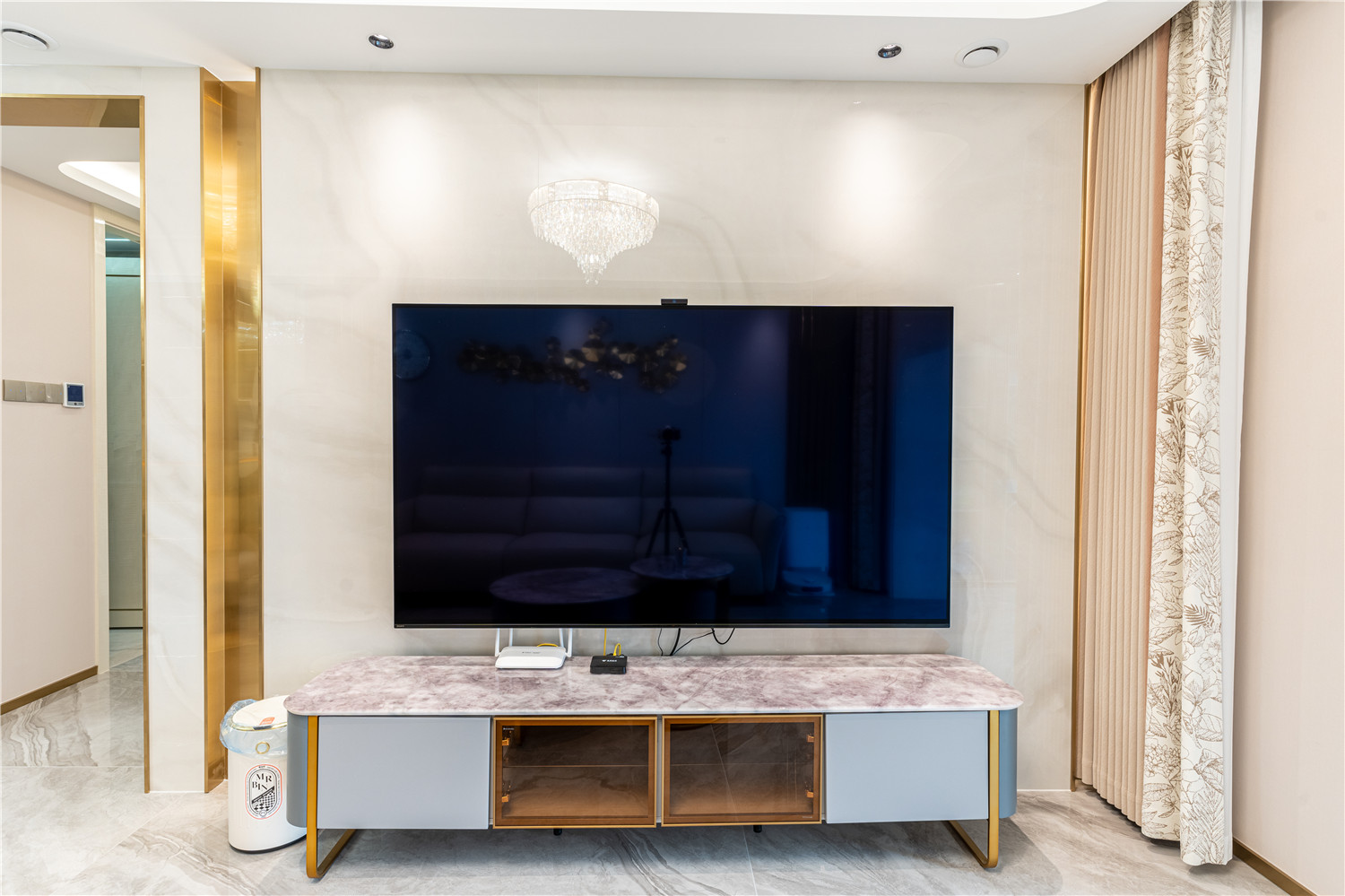 臥室空間邂逅浪漫紫色,時尚高雅的軟包設計不僅增添了隔音效果,也散發(fā)出優(yōu)雅古典的歐式氣息,電視機的融入凸顯出主人對高品質(zhì)生活的追求,傳遞出舒適智能的歐式生活品質(zhì)。