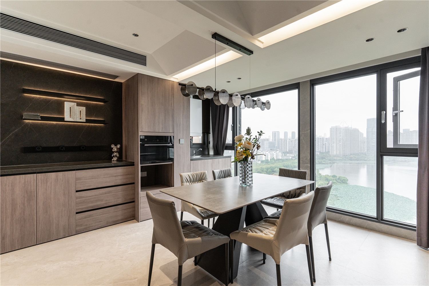這是一套位于東湖天下的180㎡四居室房屋,空間面積做大且戶型結(jié)構(gòu)相對沒有太多瑕疵,因此在設計時無需在戶型空間的改造上做過多“糾纏”,以業(yè)主及其家人的使用需求為主即可。以不同材質(zhì)的地面材料為空間隔斷,能夠讓整個房屋更顯緊湊合理。為讓各個功能空間更具銜接感與一直性,不同的功能空間使用了相似的元素或者色彩進行裝飾,以從視覺上保障整個房屋空間的和諧美。