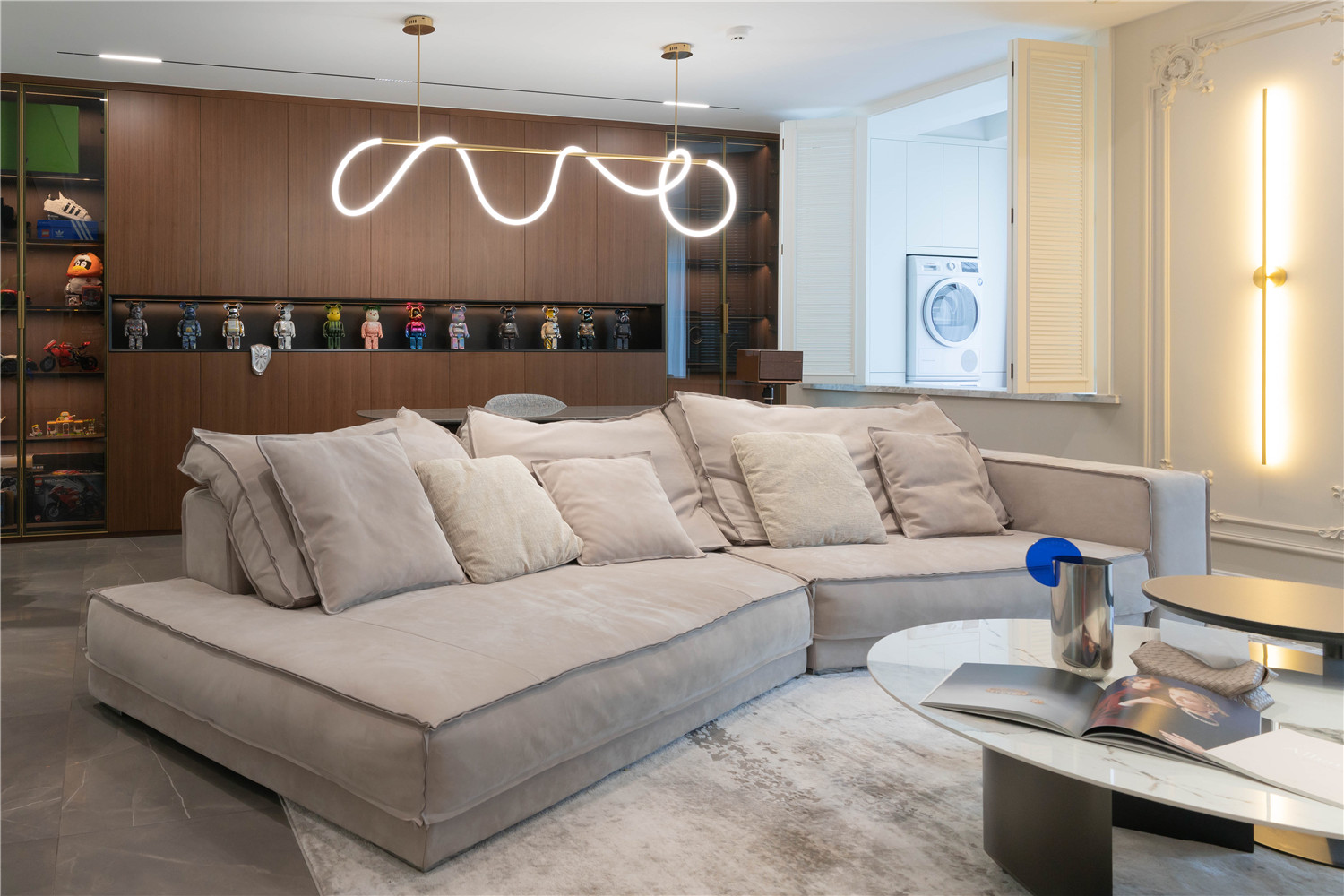案例介紹:220㎡的四房大戶型采用現代輕奢風格設計,大氣雅致,歷久彌新。業主是一個多子家庭,喜愛具有女王氣場的咖色系輕奢風,希望設計師為百變空間塑造優雅基調,注入品質與時尚,呈現出令人回味,倍顯精致的獨特魅力。