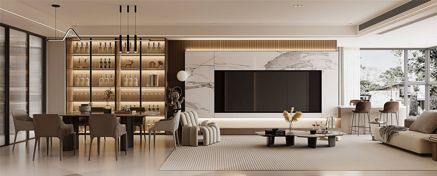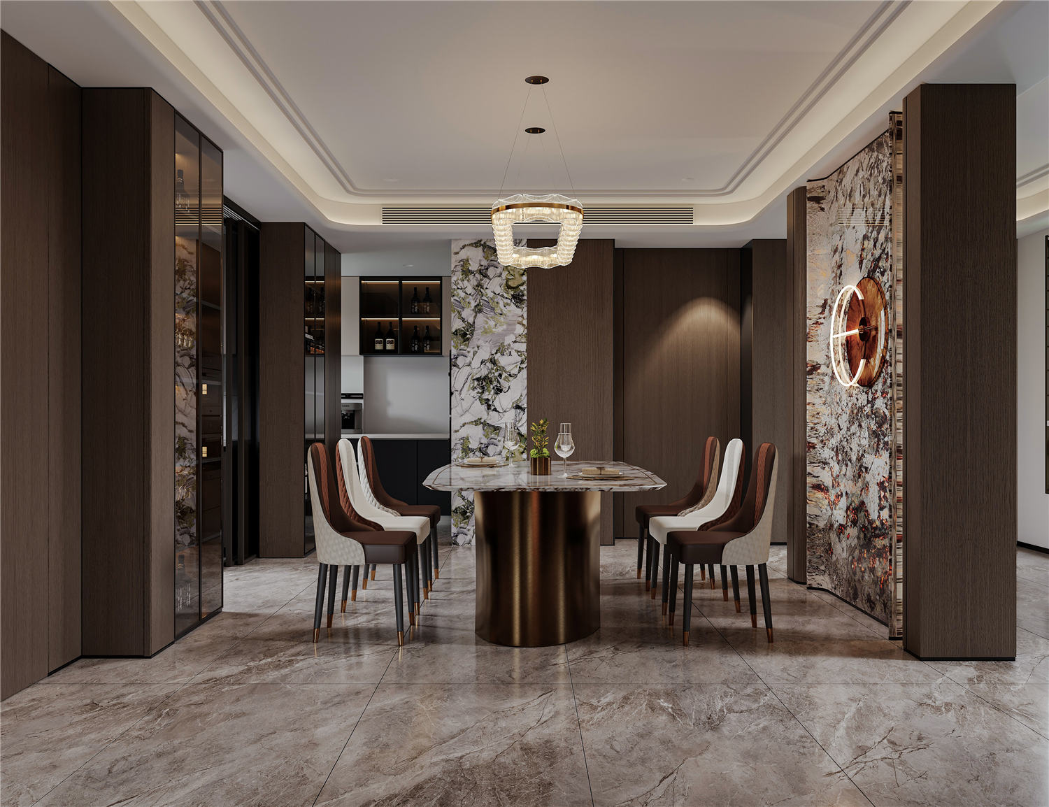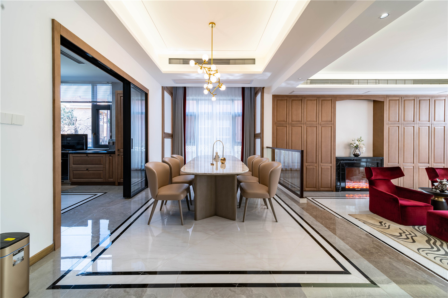 重新排布家居空間的功能形式,矯正其表現形態以完善公共區域的融洽相處。通過客餐廳一體化結合餐島一體的設計,令家人間的互動更為親密直接。同時,精細調配空間需求,確保功能與居住舒適感達到完美平衡,營造張弛有度的家居氛圍。