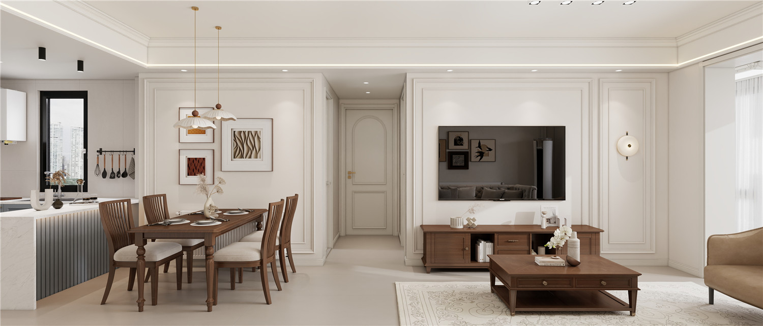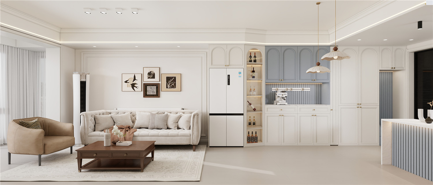 案例簡介:本案例的家庭為幸福的五口之家,除了業(yè)主夫妻二人外還有業(yè)主的父母與孩子,因此業(yè)主希望設(shè)計(jì)師能夠根據(jù)不同家庭成員的需求對空間進(jìn)行合理的規(guī)劃與設(shè)計(jì),以提升起居幸福感。而在與所有家庭成員進(jìn)行一定交流溝通后,設(shè)計(jì)師折中選擇了認(rèn)可度比較高的現(xiàn)代輕奢風(fēng)作為空間主裝修基調(diào),而色彩的選擇上則以簡潔素雅為主,這樣相對比較耐看且易于打掃。