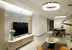 案例簡介:本案例的業主是一位年輕的80后企業女領導,忙于工作的她對于家居生活空間有著更高的要求,希望能夠讓自己的心靈在家居空間中更好的得到休憩。因此,設計師在進行裝修設計的時候,選用了相對比較柔和的色彩作為主基調色,以營造一種朦朧溫馨的視覺效果。而各類材料則優先選用質感強的,以滿足女業主的審美需求。