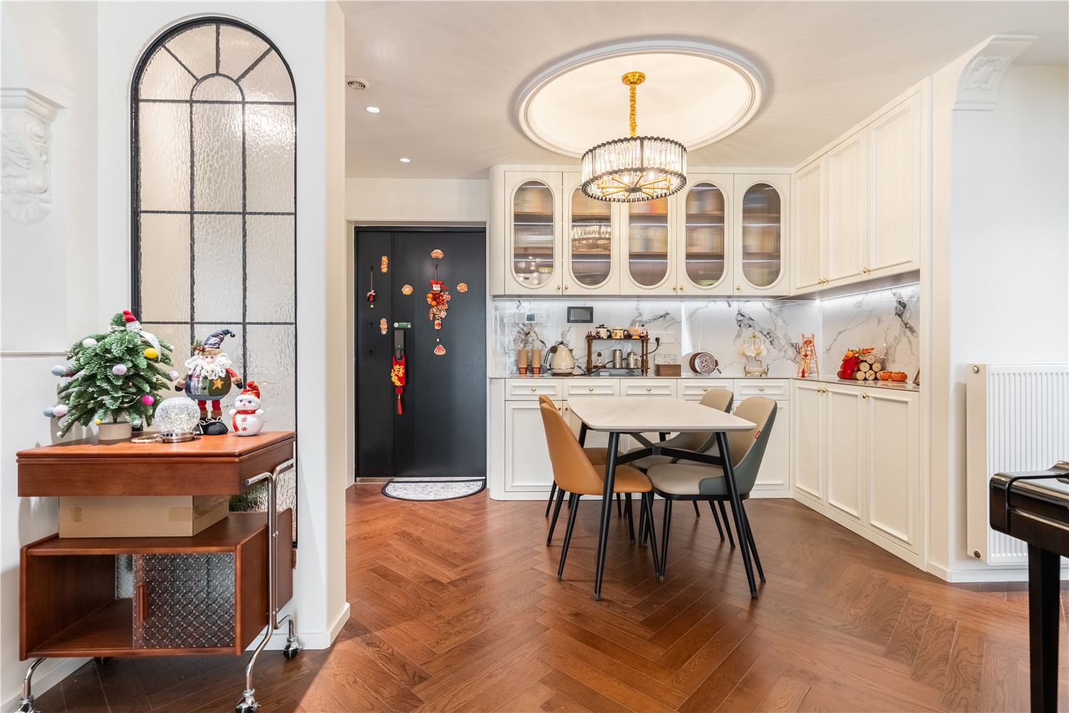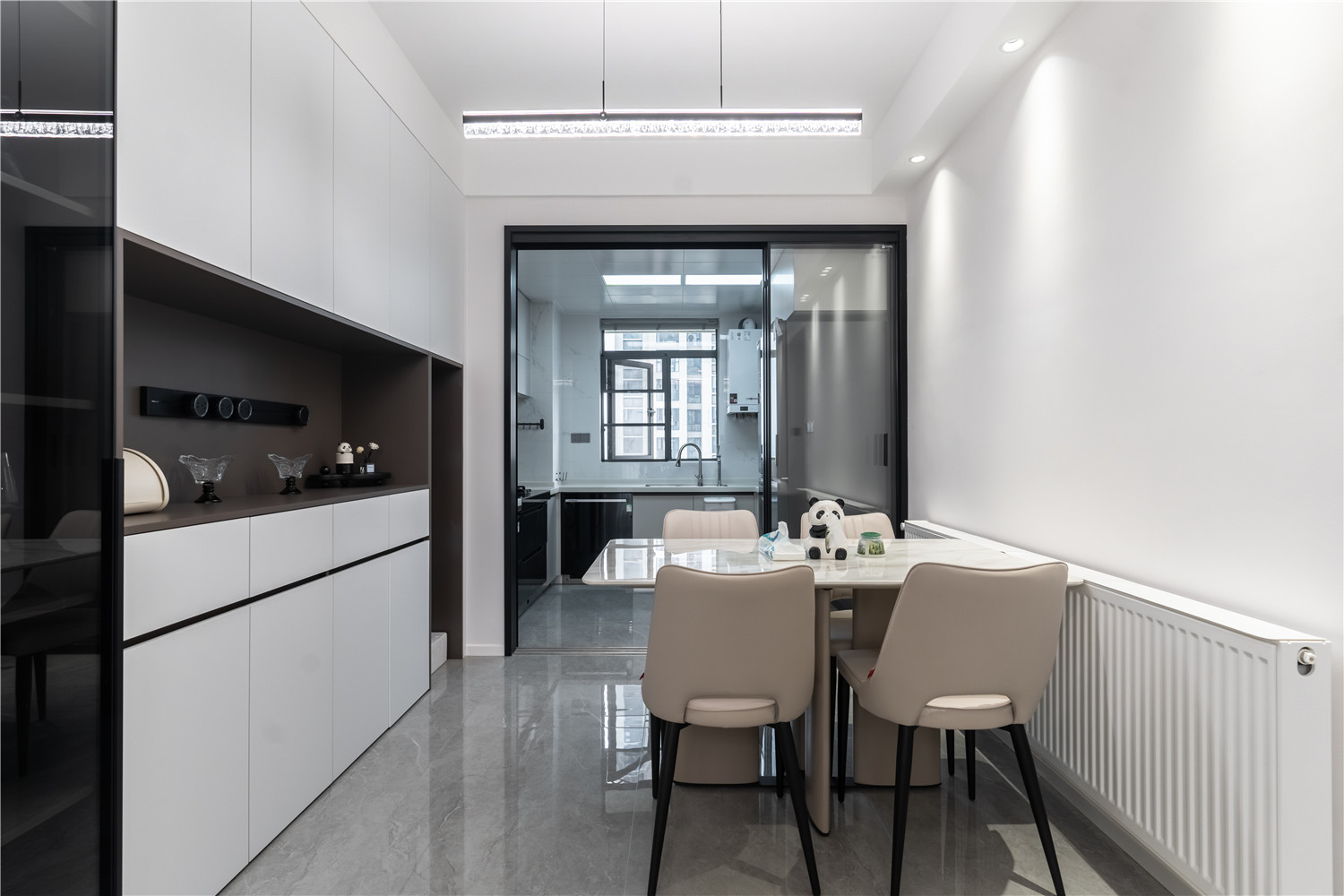 案例簡介:對于空間氣質的表達是一門藝術,本案例的餐廳呈現暗色系的現代感官,這里沒有喋喋不休 寧靜有增長心靈的力量,似乎能讓人感知優雅的存在。整個家居空間則以原木色與白色為主體,拾取飽和度較低的灰黑色系點綴,讓整個空間在舒適簡單中隱隱散發高級的質感。