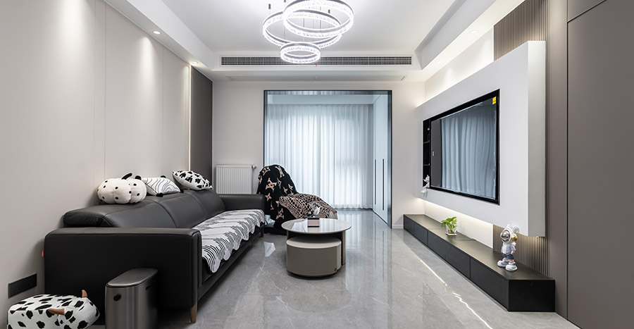 案例簡介:對于空間氣質的表達是一門藝術,一個優秀的設計師往往能夠借助簡單的色彩組合來營造不同的氛圍感,再借助一些合理的裝飾點綴,打造出一所帶有獨特氣息的家居空間。本案例的設計師借助簡約的灰白配色來營造空間的個性與氣質,同時借助不同材料的質感裝飾空間,讓整個家居空間呈現簡約而又不簡單的視覺效果。