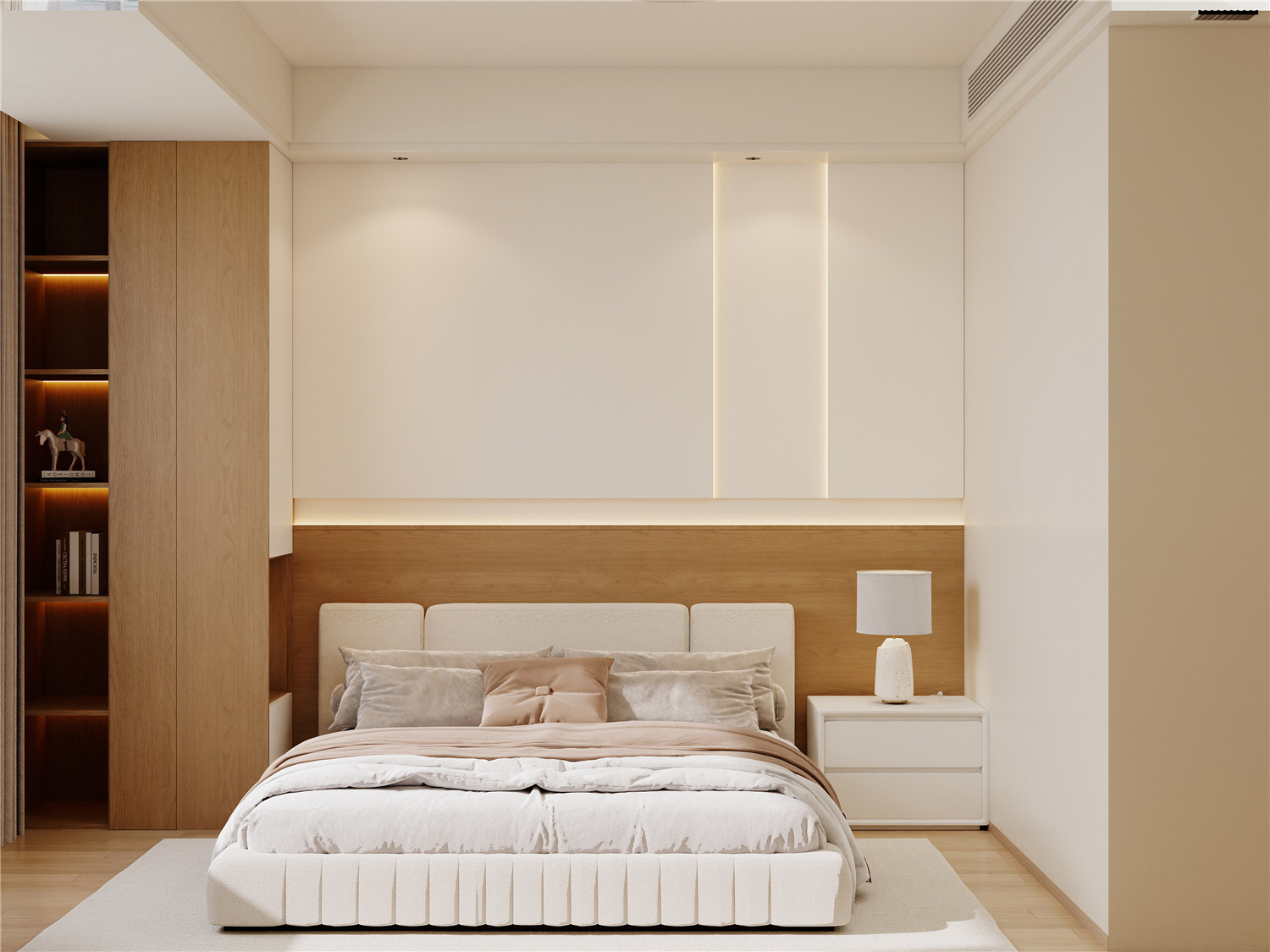 大面積的白色背景墻搭配上嵌入式的電視柜設計,整體給人簡約清新而又前衛的獨特氣息。