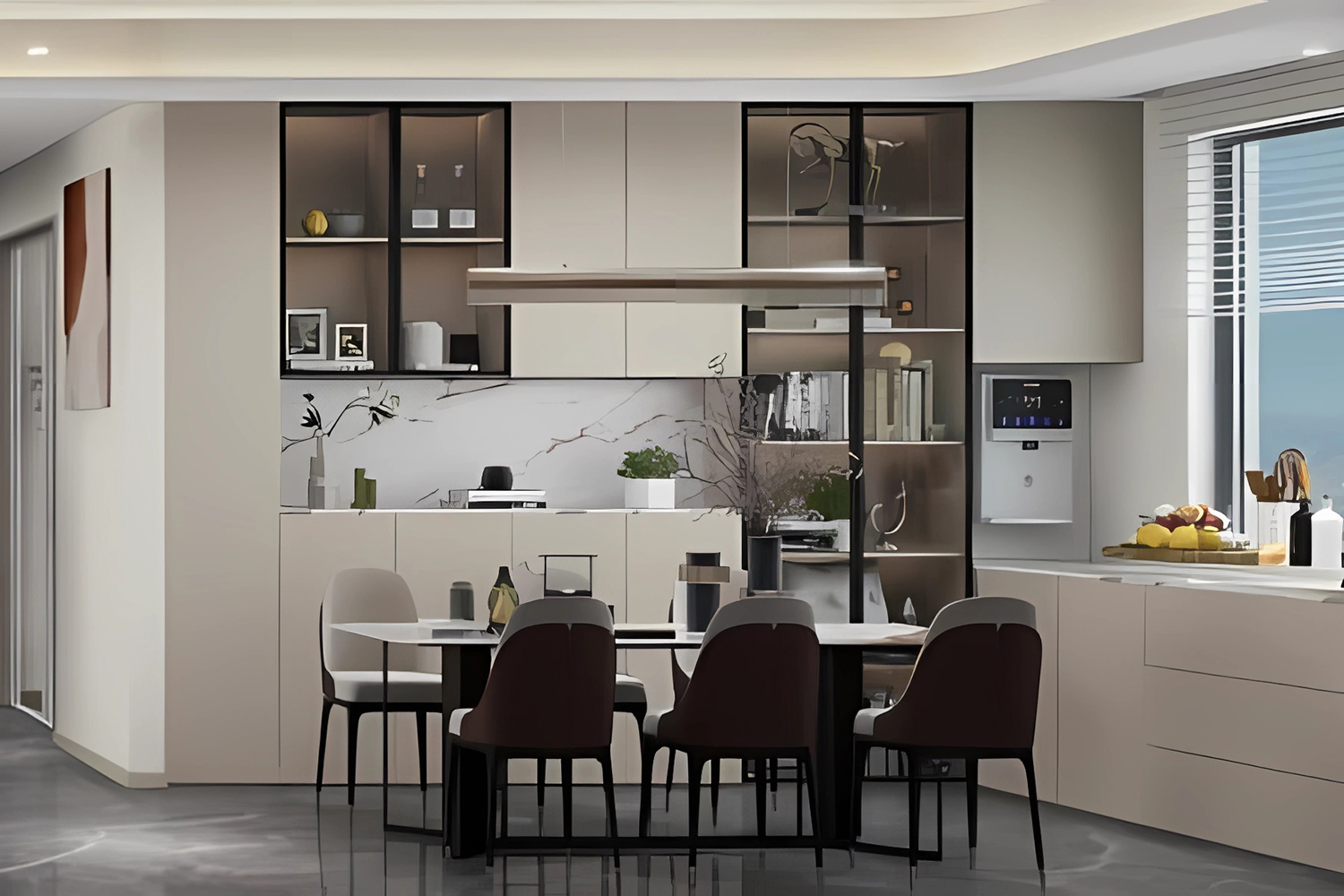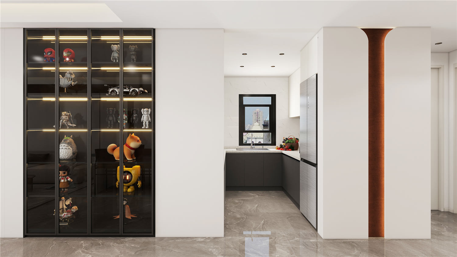 可收納式的臺(tái)面有效提升空間利用率,嵌入式雙開(kāi)門(mén)大冰箱時(shí)尚感十足而又不失實(shí)用性。