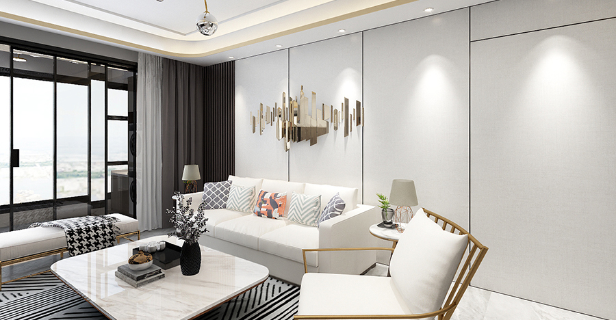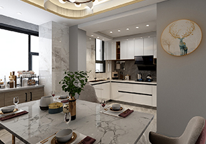 這座位于臥龍墨水湖邊的140㎡三居室住宅的結構相對比較方正規整,結構缺陷比較小,最大的空間問題在于客廳區域與就餐區域的面積不夠大,因此設計師在進行規劃設計的時候僅借助視覺的分隔來起到空間劃分的作用,以從視覺上起到放大整個家居空間的作用。而玄關處則是借用簡單的裝飾設計,來緩解空間面積不大所帶來的壓抑感。