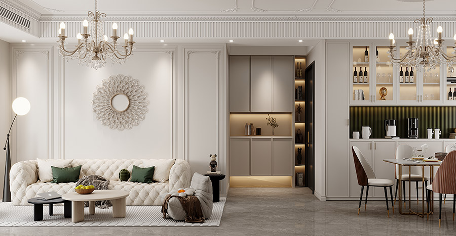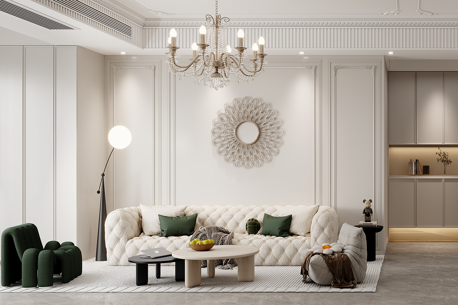 案例簡(jiǎn)介:本案例的業(yè)主是一位剛剛留學(xué)歸來(lái)的95后女學(xué)生,這套由父母購(gòu)置的房屋將按照她的喜好與想法進(jìn)行裝飾設(shè)計(jì)。而剛剛從歐洲回來(lái)的她對(duì)歐洲文化有著濃烈的興趣,因此希望能夠在家裝中融入歐式文化,強(qiáng)調(diào)個(gè)性與古典。為了滿足業(yè)主的審美,設(shè)計(jì)師選用了傳統(tǒng)的歐式風(fēng)進(jìn)行軟裝,搭配以各種歐式元素,強(qiáng)調(diào)空間高檔貴氣氛圍。