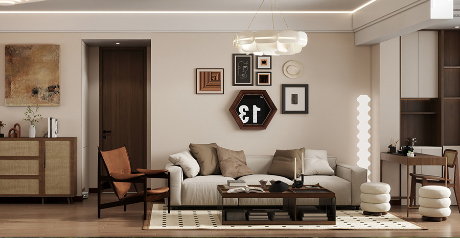 案例簡介:在家裝設計中有一種設計手法叫做留白,這指的是借助大面積的空白營造空間的韻味感,給人以無限遐想,這是簡約風中最為常見的設計手法,能夠讓人在家居空間中更好的放空自己。而本案例的業主不喜歡設計繁瑣的家居空間,希望通過最為簡潔的元素打造出干凈舒適的休憩空間,因此最終設計師為業主敲定了帶有留白設計的簡約風軟裝,通過合理的點綴搭配大面積留白來營造一種獨特的優雅高級感。