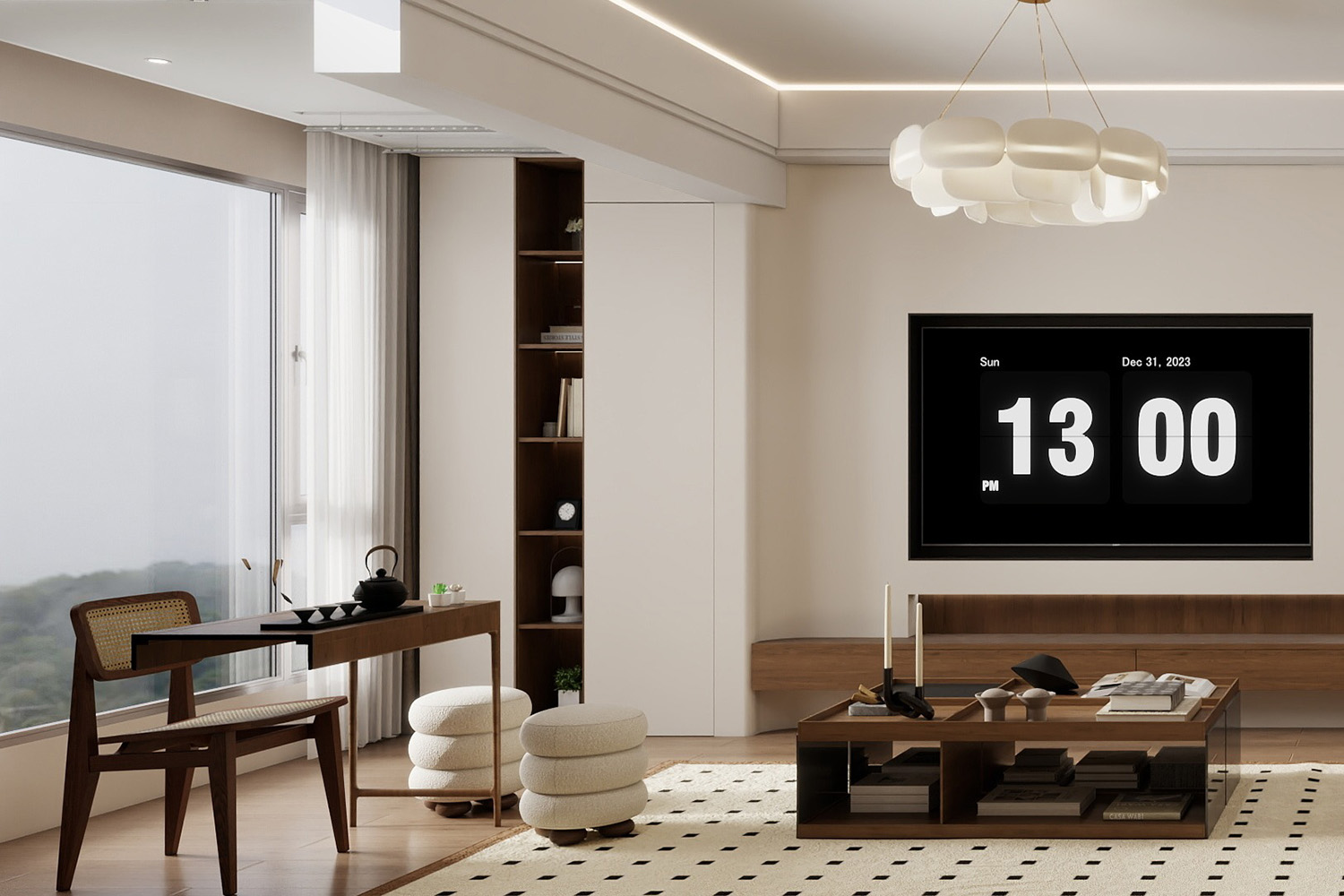 褐色與白色構成的書柜藝術感十足,搭配上簡單的圓形擺件,展示主人獨特審美與品位。