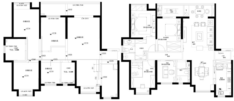 戶型整體來看較為方正,縱深布局,南北通透,原始戶型中,客餐空間墻體過多造成功能區(qū)分區(qū)明顯,為提升空間的空氣流通性,令客餐不顯局促,設(shè)計師調(diào)整了結(jié)構(gòu)問題,另外,將主臥一側(cè)的衛(wèi)生間規(guī)劃進主臥中,打造出套房空間,提升了主臥空間的私密感。