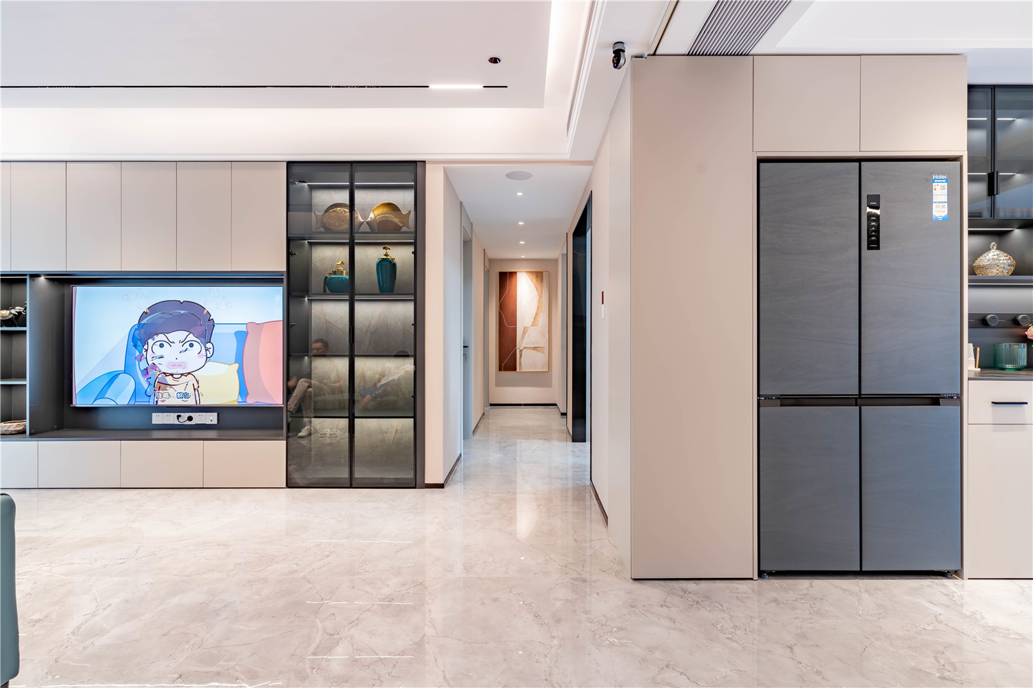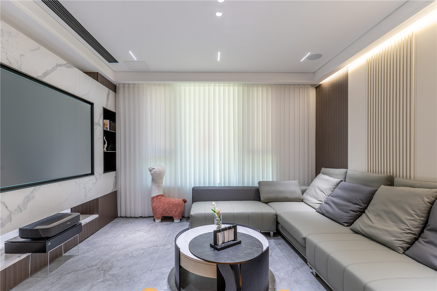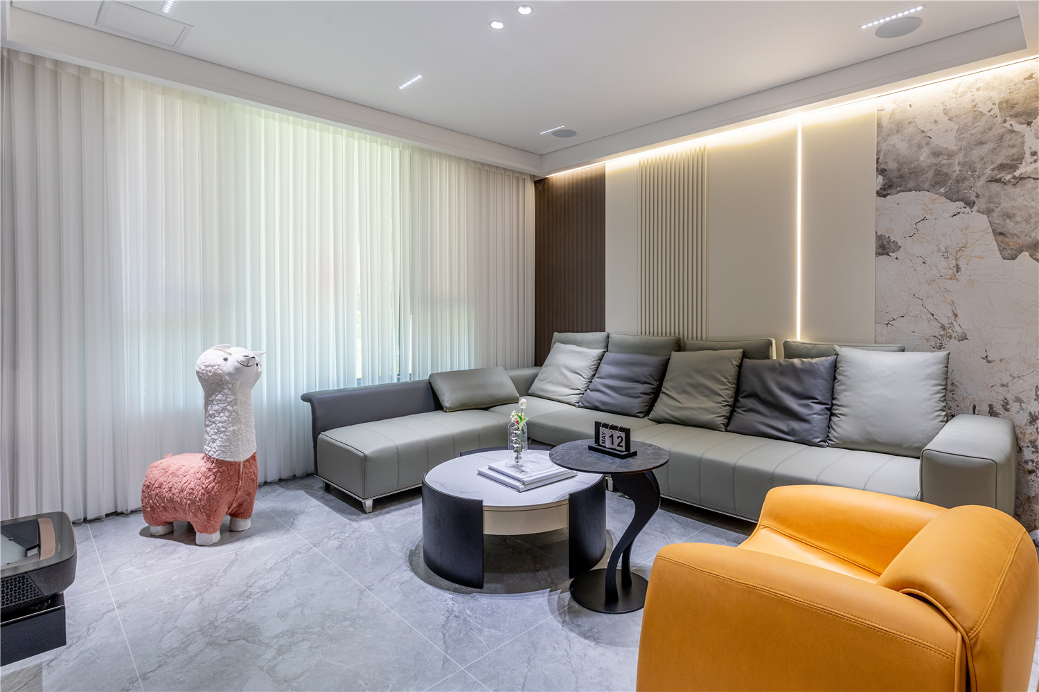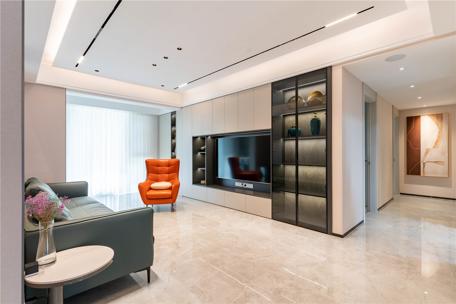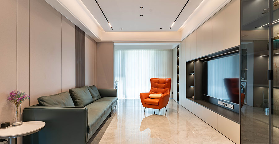 大理石電視背景墻既可以起到裝飾點(diǎn)綴客廳的作用,又將客廳與外部空間進(jìn)行軟隔斷,有效提升空間的界限感。