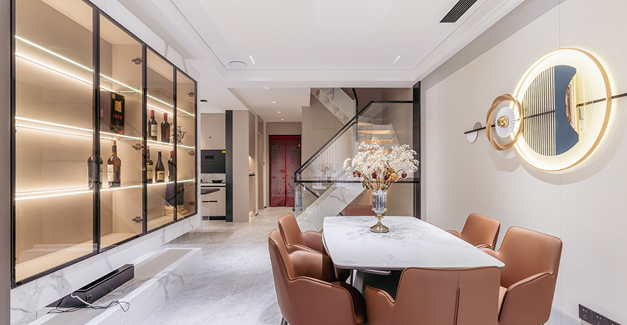 案例簡(jiǎn)介:由于本案例自帶庭院,因此設(shè)計(jì)師在室內(nèi)融入了多種綠植設(shè)計(jì),從外觀上保障庭院與室內(nèi)設(shè)計(jì)的一致性,同時(shí)通過(guò)對(duì)稱性原則提升空間整合感。而裝修風(fēng)格的選擇上,設(shè)計(jì)師則選用了相對(duì)比較耐看上檔次的現(xiàn)代輕奢風(fēng),并借助高端材料的質(zhì)感來(lái)提升整個(gè)別墅空間的檔次感與品質(zhì)感。