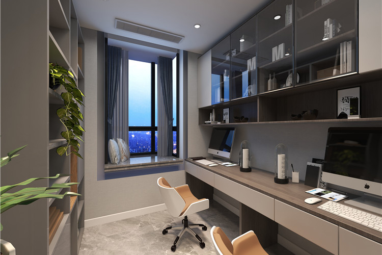 書房空間看上去十分開闊,臨窗設(shè)計了寫字桌一體柜,家居的色調(diào)看起來非常和諧,墻面嵌入式設(shè)計了衣柜和收納柜,營造出一種優(yōu)雅的氣息,空間中滿滿的現(xiàn)代風(fēng)。