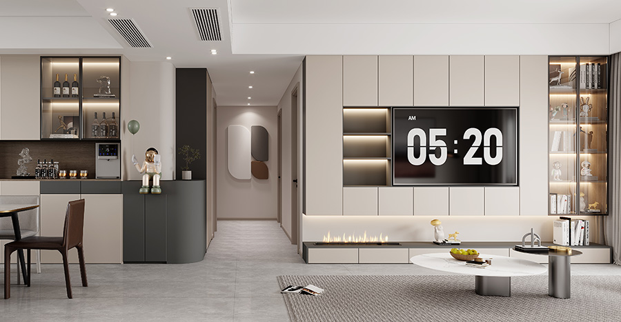 案例介紹:業(yè)主性格內(nèi)斂、穩(wěn)重,頗愛現(xiàn)代風(fēng)格,設(shè)希望新家以素雅的大地色做裝飾,以呈現(xiàn)出簡潔的視覺效果,設(shè)計師根據(jù)業(yè)主家庭需求,用現(xiàn)代家具裝飾,營造出時尚前衛(wèi)的氛圍,且兼具靈動脫俗的藝術(shù)美感,實現(xiàn)了業(yè)主希望的更聰明、更智能的人性化居住體驗需求。