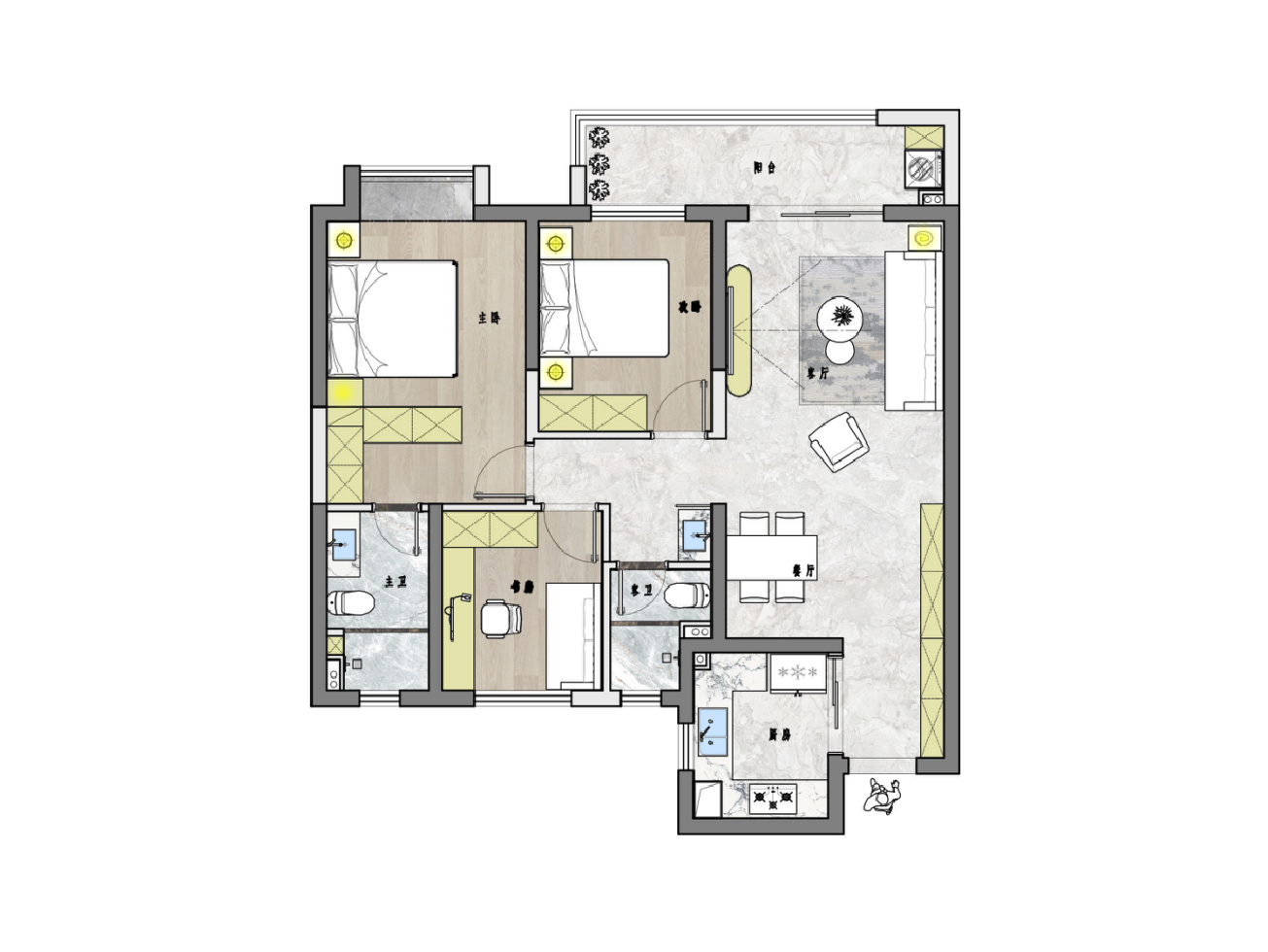 去客廳化設(shè)計+舒適三房