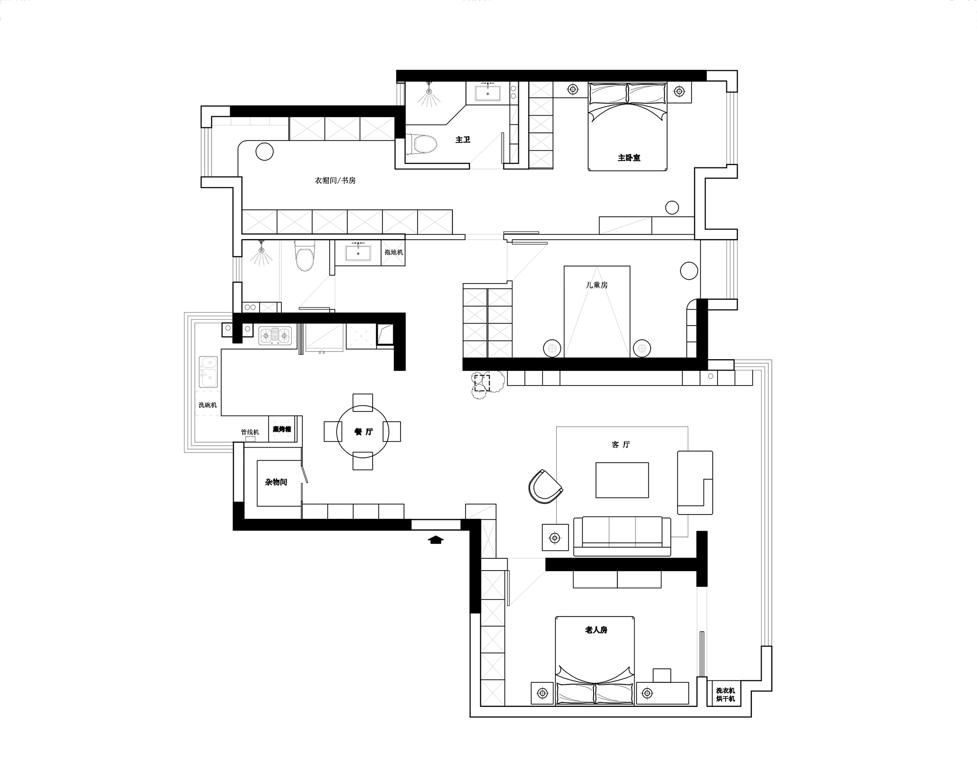 3、公衛內移創造拖地機空間,部分走道融入主臥套間,并借次臥走道定制儲物柜,優化收納。
