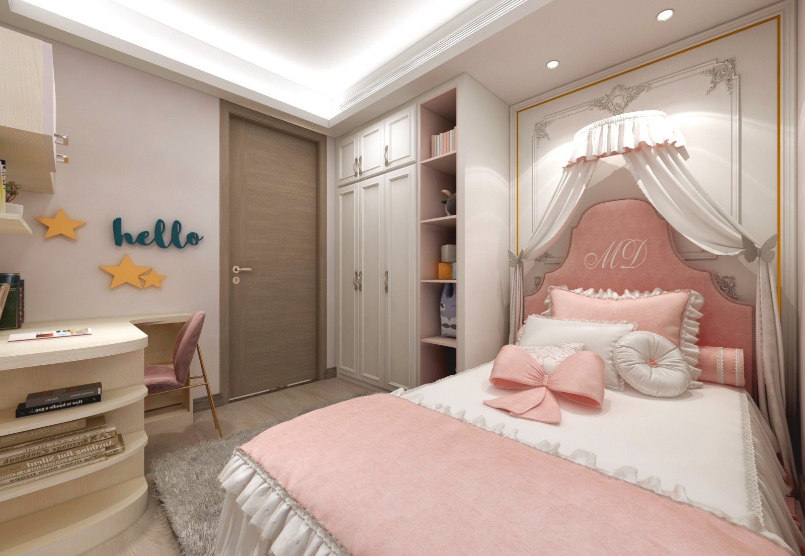 充滿童真韻味的床頭墻設計搭配上粉嫩的床體設計,勾勒出甜美優雅的少女氛圍。
